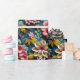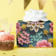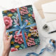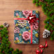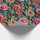 Un papier d'emballage coloré à fleurs en relief roses et beige sur fond vert pour les anniversaires ou les cadeaux de la fête des mères