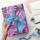 Fleur vive et colorée, tourbillons floraux et un plante de papillon magique, aquarelle contemporaine en violet, violet, rose, fuchsia, bleu vert irisé couleurs doré et argent feuille par Bulgan Lumini (c)