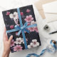 Papier Cadeau Fleurs Sakura Roses Noires, Design Motif,