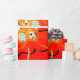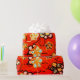 PAPIER CADEAU FLEURS STYLISÉES, RIBBONS BLANCS NOIRS ROUGE CLAIR