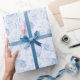Papier Cadeau Floral Blue Roses Elegant Mariage damassé