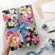 Les fleurs tropicales de plumeria rose, jaune et blanc sur un papier d'emballage arrière - plan noir sont parfaites pour les mariages, douches nuptiales, anniversaires et plus encore.
