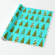 Un motif moderne aux arbres géométriques blancs, dont certains aux ornements blancs enneigés...le tout sur un arrière - plan bleu aqua.