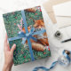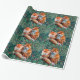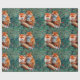 PAPIER CADEAU FOXES ROUGES EN FOLIAGE VERT ET FLEURS