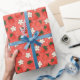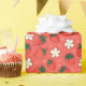 Papier d'emballage floral rouge fraise et blanc pour l'artisanat et l'emballage cadeau. Le design rouge, blanc, rose et vert doux est idéal pour les fêtes et les événements d'été.