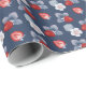Papier Cadeau Fraises, Fleurs, Feuilles Sur Bleu Foncé