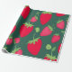Papier Cadeau Fresh Strawberry Pattern on Dark Green Background