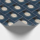A full moon seems trapped in a basketball hoop, its netting stretched against a starry night sky, creating a surreal and captivating scene