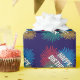 Fun Birthday wrapping paper with fireworks print. Personalized wrapping paper for celebrations. Cheerful design with custom name. Customizable background color. Available in matte and glossy.