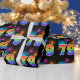 Ce papier d'emballage amusant et dynamique présente un motif coloré inspiré par les feux d'artifice, ainsi que le numéro "79", avec un motif multicolore en dégradé d'inspiration arc-en-ciel, sur un arrière - plan de couleur noire. Un papier comme celui-ci peut être utilisé pour envelopper des cadeaux ou des cadeaux donnés pour le soixante-dix-neuvième anniversaire de quelqu’un, ou peut-être pour le soixante-dix-neuvième anniversaire du couple ou pour un autre 79e événement. [~Z0000322]