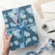Fun Jigsaw Puzzle Happy Birthday Custom Motto Blue Wrapping Paper features jigsaw puzzle pieces with a custom text on top, adding a personal touch. Text placeholders have space for events like "Happy Birthday!" and a short motto like: "Tiny Piece", "Big Love". Any unwanted text placeholder leave empty. All elements are color customizable.