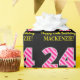 Ce design amusant sur le thème de l'anniversaire est composé d'un grand nombre de "24", avec un motif à rayures rose foncé et rose clair. Il comporte également le message "Joyeux 24e anniversaire", et un nom personnalisé. L'arrière - plan est noir de couleur. Un papier d'emballage amusant comme celui-ci pourrait être utilisé pour envelopper des cadeaux donnés à quelqu'un pour célébrer leur vingt-quatrième anniversaire. [~Z0000376]