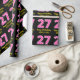 Cette conception amusante de papier d'emballage sur le thème de l'anniversaire comporte un grand nombre de "27" avec un motif à rayures rose clair et rose foncé, ainsi que le message "Joyeux 27e anniversaire", et un nom modifiable. L'arrière - plan est noir de couleur. Un papier d’emballage à thème d’anniversaire comme celui-ci pourrait être une façon amusante d’envelopper un cadeau ou un cadeau pour célébrer le vingt-septième anniversaire de quelqu’un. [~Z0000376]