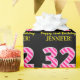 Ce design amusant de papier d'emballage sur le thème de l'anniversaire comporte un grand nombre de "32", avec un motif rose foncé et rose clair rayures. Il comporte également le message "Happy 32nd Birthday," et un nom modifiable. L'arrière - plan est noir de couleur. Un papier d’emballage à thème d’anniversaire comme celui-ci peut être utilisé pour donner un cadeau ou un cadeau pour célébrer le trente-deuxième anniversaire de quelqu’un. [~Z0000376]