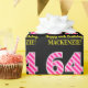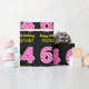 Cette conception amusante de papier d'emballage sur le thème de l'anniversaire comporte un grand nombre de "64" avec un motif rose clair et rose foncé rayures, ainsi que le message "Happy 64th Birthday,", et un nom modifiable. L'arrière - plan est noir de couleur. Un papier comme celui-ci peut être utilisé pour donner un cadeau ou un cadeau en l’honneur du 64e anniversaire de quelqu’un. [~Z0000376]