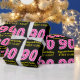 Ce design amusant de papier d'emballage sur le thème de l'anniversaire comporte un grand nombre de "90", avec un motif rose foncé et rose clair rayures. Il comporte également le message "Joyeux 90e anniversaire", et un nom personnalisé. L'arrière - plan est noir de couleur. Un papier d'emballage à thème d'anniversaire comme celui-ci pourrait être une façon amusante d'envelopper un cadeau ou un cadeau donné à quelqu'un qui célèbre son 90e anniversaire. [~Z0000376]