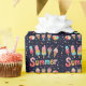 Bright and colorful popsicles, ice cream cones, and refreshing drinks are arranged around the word "Summer," creating a lively and festive atmosphere