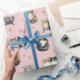 Papier Cadeau Funny Cats parmi les étoiles sur chat rose