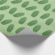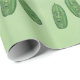 This wrapping paper roll is green with a scattering of funny big green Anthropomorphic pickles with faces that have a surprised look with green eyes.