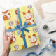 Papier Cadeau Gamer Maneki Neko Motif avec D20 Dice (Jaune)