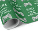 Gamer Video Game Controller Anniversaire Party Wrapping Papier. Contrôleur de jeu sur un arrière - plan vert. Ajoutez votre nom et votre âge.