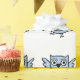 Ce papier d'emballage d'amusement comporte les hiboux en pastel de bébé bleu dansant sur un arrière - plan blanc. Mignon pour un baby shower de garçon.