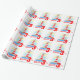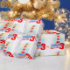 Papier d'emballage d'anniversaire avec le phare de lumière en mer en bleu et rouge. Personnalisez ce papier fantaisiste d'anniversaire de garçon avec votre propre choix de nom et d'âge. Il lit actuellement Kieron 3 aujourd'hui. Uniquement peint en aquarelle et dessiné par Sarah Trett.