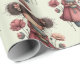 Wrapping paper with a cute retro image featuring a whimsical girl with rosy cheeks and flowers in her hair. Carrying a green frog doll.