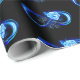 Luminous infinity symbol with glowing, beautiful, lushly blooming rose made of blue flames on black background.