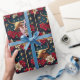 Papier Cadeau Gold Longhorn Steer avec Poinsettias Noël