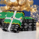 Un papier d'emballage imprimé motif couleur vert, noir et jaune or boue pour ce cadeau spécial!