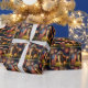 Papier Cadeau Golden Retriever tenant Un Drapeau Américain