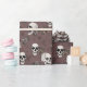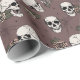 Tiré à la main dans l'encre noire, ce papier d'emballage présente un beau motif de crânes, de roses et de toiles d'araignée dans des tons crème et rougis, le tout contre un élégant arrière - plan marron violet.