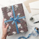 Papier Cadeau Goth Maroon Crâne pourpre et fleurs Halloween