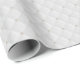 Le goujon de perle piqué par goujon blanc de perle a piqué les carrés piqués piqués gonflés diagonaux distinctifs comme ceux trouvés sur des sacs à main et les accessoires, est maintenant disponible ici avec les goujons minuscules d'accent de perle de graine pour épouser des invitations, cartes de réception, sauvent les cartes de date, cartes de Rsvp, merci des cartes, épousant la papeterie, les timbres et les étiquettes et même le papier d'emballage. L'édredon clouté par perle est basé sur le motif peut-être du couturier parisien le plus célèbre dans le monde, identifié initiales par son double Cs de ` des' et ses sacs à main en cuir piqués semblables. Assortissez votre suite de papier de mariage à votre sac prisé de cc ou cadeaux enveloppez vos demoiselles d'honneur des' en papier piqué pour assortir vos invitations les épousant piquées.