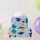 Un mignon petit pingouin portant une robe de fin d'études et portant un diplôme. Avec des trophées, des livres et une casquette de graduation.