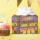 Ce papier d'emballage captivant, excitant et dynamique sur le thème de l'anniversaire est doté d'un nom personnalisé, et le message "70E ANNIVERSAIRE !" avec des lettres ayant un motif multicolore inspiré du spectre arc-en-ciel, sur un arrière - plan motif inspiré par un mur de briques. L'aspect s'inspire de celui du street art ou graffiti dessiné sur un mur. Un papier d'emballage à thème d'anniversaire comme celui-ci pourrait être une façon amusante d'envelopper un cadeau ou un cadeau donné à quelqu'un qui célèbre son soixante-dixième anniversaire. [~Z0000369]