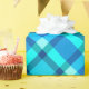 Papier enveloppant à grande échelle, recto moderne plaid dans les tons cobalt, bleu marine et bleu ciel avec turquoise et aqua