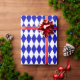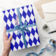 Un papier d'emballage conçu avec un motif arlequin bleu et blanc royal en grande taille. Vous pouvez changer le blanc pour une couleur différente de manière simple.
