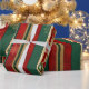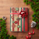 Papier de Noël Papier à rayures rayures rouges d'or moderne Papier de Noël à rayures en vert bordeaux et or bordé d'ornements d'arbres de vacances