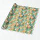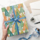 Papier à enveloppement à motifs de pin de Noël tendance. Color Scheme inclut : vert foncé, vert clair, citron vert, orange et blanc Une idée mignonne pour vos noël minimal! !