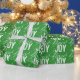 Papier d'emballage de vacances avec texte blanc qui lit Paix & Joie. Vous pouvez customiser l'arrière - plan vert pour être n'importe quelle couleur que vous voulez.