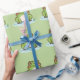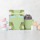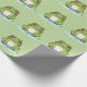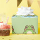 Un papier d'emballage vert avec l'illustration d'une mignonne grenouille sur son étang ! Il pourrait être utilisé pour envelopper un cadeau pour enfant ou pour vos clients si vous avez une boutique!