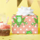 Cute grenouilles vertes sur l'arrière - plan de pois orange et blanc.