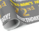 Ce papier d’emballage comporte un message comme "FIRST-NAME’S 72nd BIRTHDAY!", avec le "72nd" ayant une apparence de couleur fausse/imitation or, et avec le nom et "BIRTHDAY" dans une police amusante et audacieuse. Le nom peut être personnalisé et l'arrière - plan est gris (gris). Un papier comme celui-ci pourrait peut-être être utilisé pour envelopper les cadeaux d'anniversaire donnés à quelqu'un pour célébrer leur soixante-douzième anniversaire. [~Z0000211]