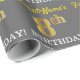 Ce design papier d’emballage comporte un message comme "8e anniversaire de prénom !", avec le "8e" ayant une apparence de couleur fausse/imitation or. Le nom peut être personnalisé et l'arrière - plan est gris (gris). Il pourrait peut-être être utilisé pour envelopper les cadeaux donnés pour le huitième anniversaire de quelqu’un. [~Z0000185]