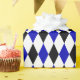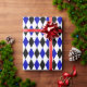 Un papier d'emballage conçu avec un motif arlequin noir, bleu royal et blanc de grande taille. Customisez la couleur blanche de l'arrière - plan parmi d'autres options.