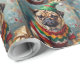Papier Cadeau Grumpy Pug Dog in Elf Hat Funny Christmas Art