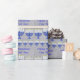 Elégant papier d'emballage Happy Hanoukka personnalisé avec un arrière - plan en tissu argent faux. Menorahs bleu foncé avec un motif blanc Star Of David caractéristiques votre texte personnalisé. Visitez mon magasin pour voir les articles assortis tels que les étiquettes cadeaux, les sacs-cadeaux, le ruban et le papier-mouchoir. Envelopper vos cadeaux Hanoukka Holiday dans le style avec celui-ci d'un joli emballage cadeau.