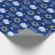 Beau papier d'emballage Hanoukka en bleu joli avec un motif cool de la star du judaïsme, rêvé pour les jeux de Chanukah amusants, et la menorah juive pour les vacances.